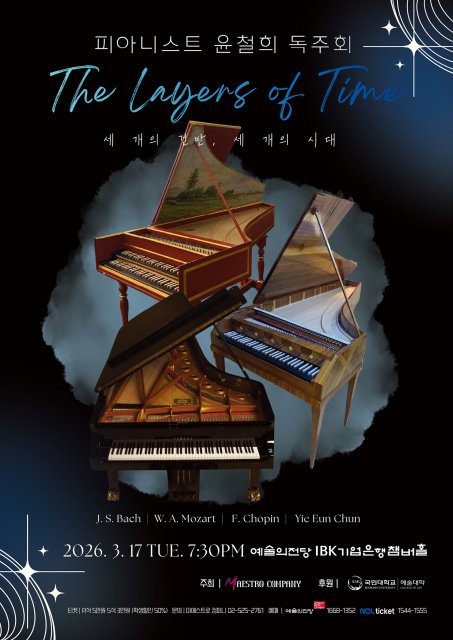(미디어원)마에스트로 컴퍼니가 주최하는 피아니스트 윤철희 독주회 ‘The Layers of Time 세 개의 건반, 세 개의 시대’가 3월 17일 오후 7시 30분 예술의전당 IBK기업은행챔버홀에서 개최된다.