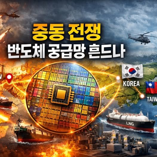 (미디어원)중동 전쟁의 충격이 석유 시장을 넘어 산업 공급망으로 번지고 있다. 이번에는 반도체다.